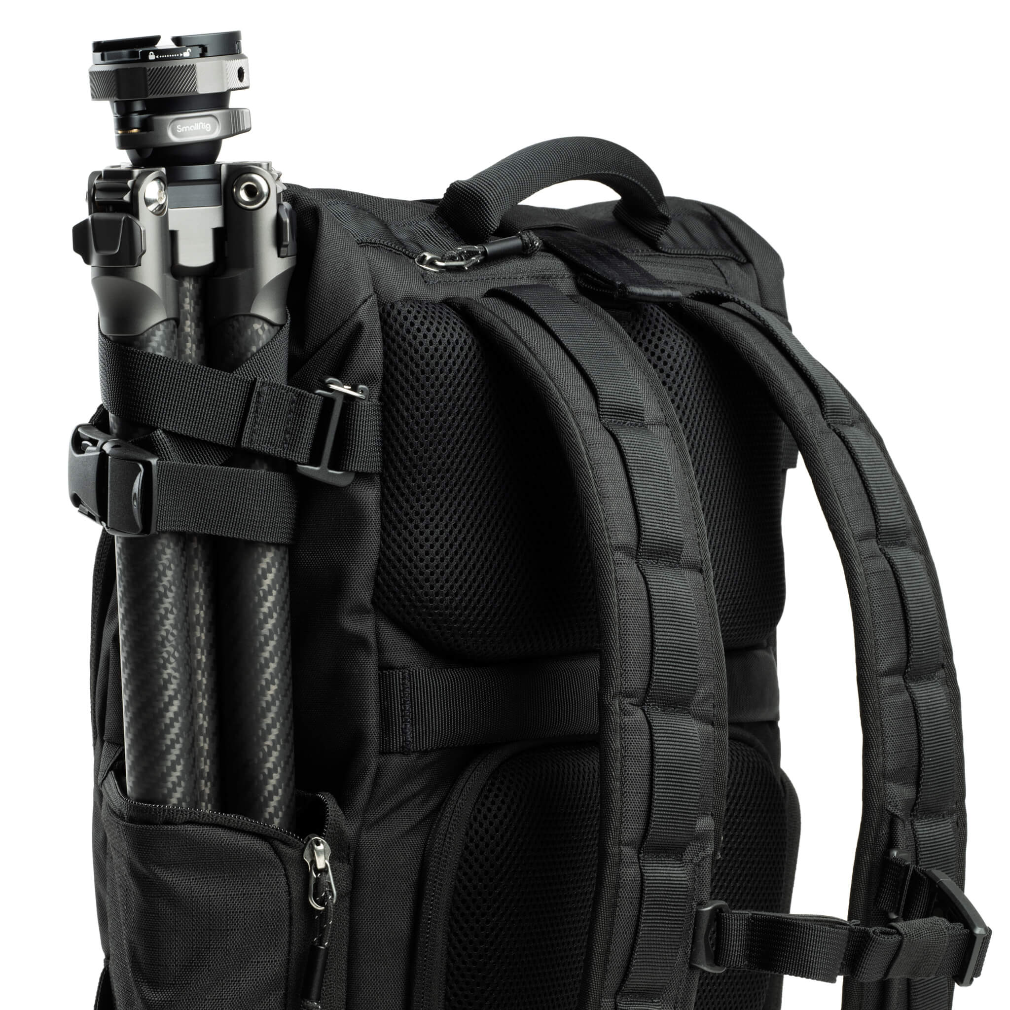 Bolsillo lateral para una botella de agua o un trípode, con la correa para trípode incluida.