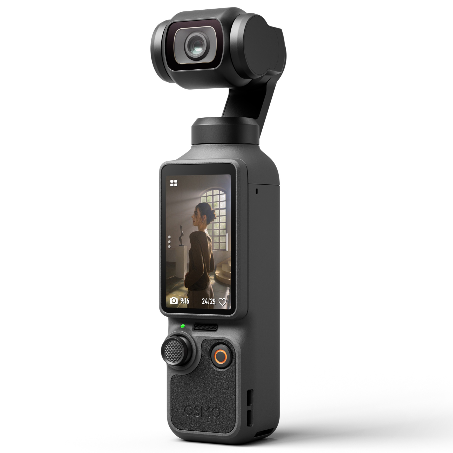 El diseño del Osmo Pocket 4 ha sido optimizado para un uso intuitivo con una sola mano. Cuenta con una pantalla táctil OLED giratoria de aproximadamente 2 pulgadas que permite encuadrar, controlar ajustes y cambiar entre modos de forma rápida y sencilla. También integra botones personalizables y controles directos de zoom para mejorar la experiencia de grabación.