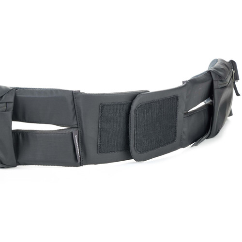 El cinturón lumbar HD de Shimoda Designs en color negro aporta una mayor estabilidad y ayuda a trasladar el peso de la mochila desde los hombros hasta las caderas, ofreciendo más comodidad y sujeción al transportar cargas pesadas durante rutas largas. Dispone de dos bolsillos con cremallera para almacenamiento y cuenta con un ajuste regulable de aproximadamente 10 cm (4"). Está fabricado con un exterior de nailon resistente, acolchado de EVA de alta densidad y un forro interior de malla transpirable que mejora la ventilación.
