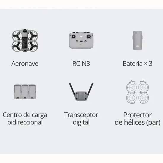 El dron también es compatible con diferentes métodos de control: desde tu smartphone (a través de la app DJI Fly), hasta controladores físicos como el RC-N3, mandos de movimiento y gafas FPV para una experiencia inmersiva.