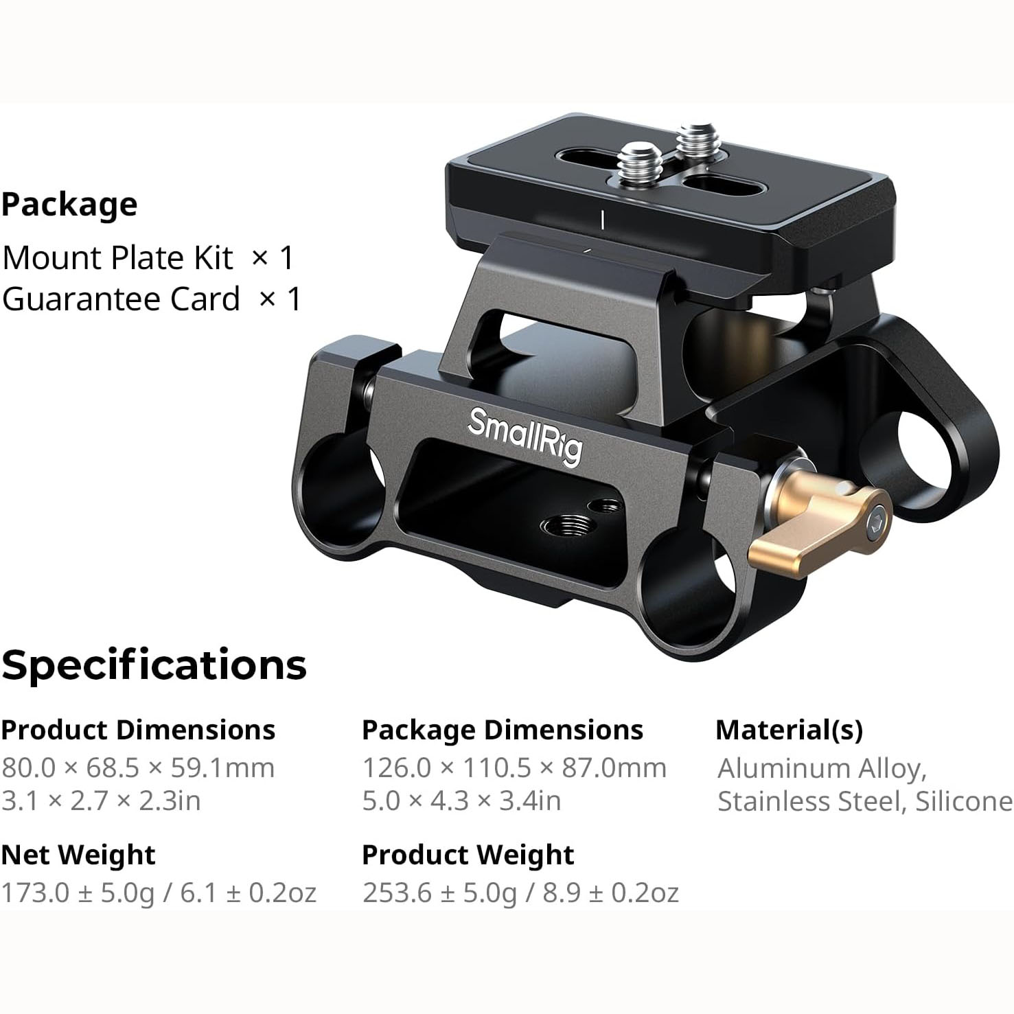 SMALLRIG ARCA-TYPE MOUNT PLATE KIT WITH 15MM DUAL 5365