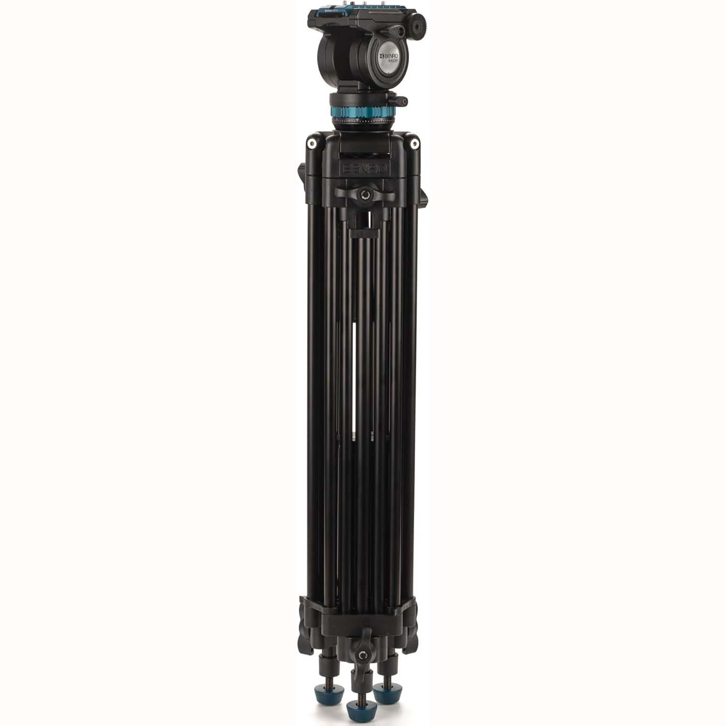 Este modelo también cuenta con una semiesfera de nivelación de 60 mm, que permite ajustar la cámara con gran precisión, y un mango panorámico que puede fijarse en cualquiera de los dos lados del cabezal, lo que ofrece mayor flexibilidad para usuarios diestros o zurdos. El trípode se presenta con un estuche acolchado con correa, lo que garantiza un transporte cómodo y seguro.
