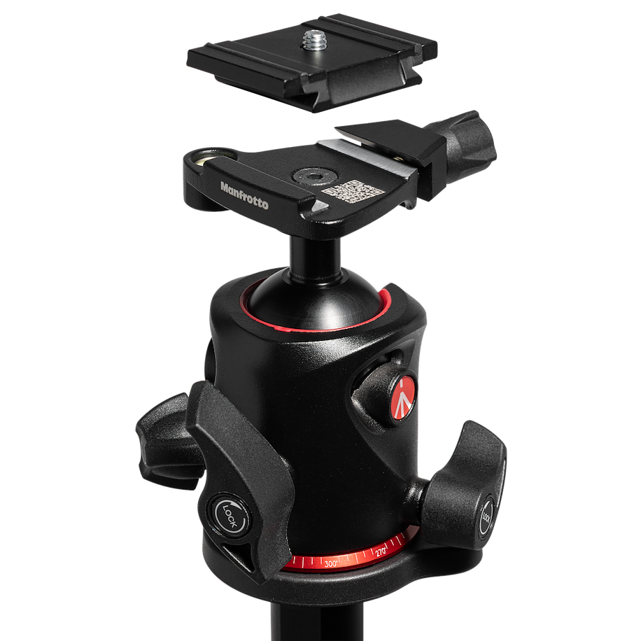 La rótula de bola XPRO complementa este flujo de trabajo ágil con control de fricción intuitivo, permitiendo equilibrar la cámara suavemente antes del bloqueo.